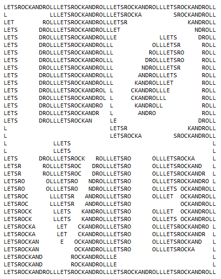 Example of output using “LETSROCKANDROLL” as message